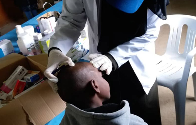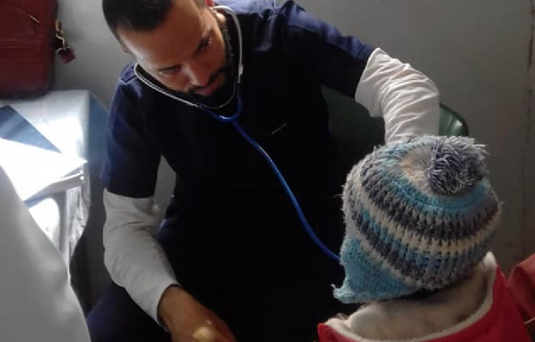 A pediatrician on an ECHO-supported team in the far southwest of Libya checks a young patient.