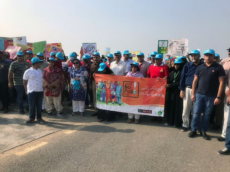 A walk held to mark World Polio Day was led by Mushtaq Ghani, the Speaker of the Khyber Pakhtunkhwa Provincial Assembly, and other parliamentarians, to express their strong commitment to ending polio.