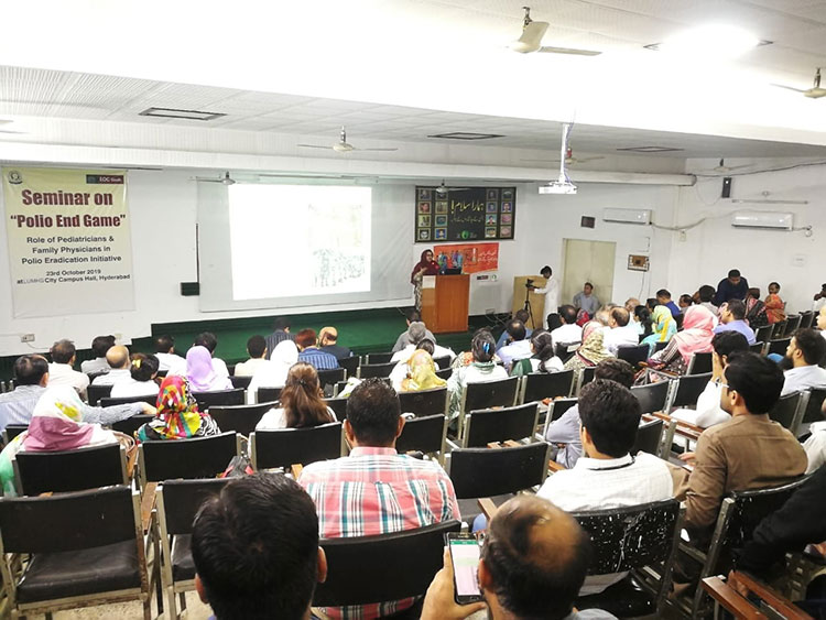 The Pakistan Pediatrics Association in Hyderabad held an awareness and advocacy seminar at the Liaqat University of Medical and Health Sciences to mark World Polio Day and the role of doctors in educating parents about polio and the importance of vaccination. The seminar called on doctors to commit to supporting vaccination and routine immunization activities and eliminating misconceptions.