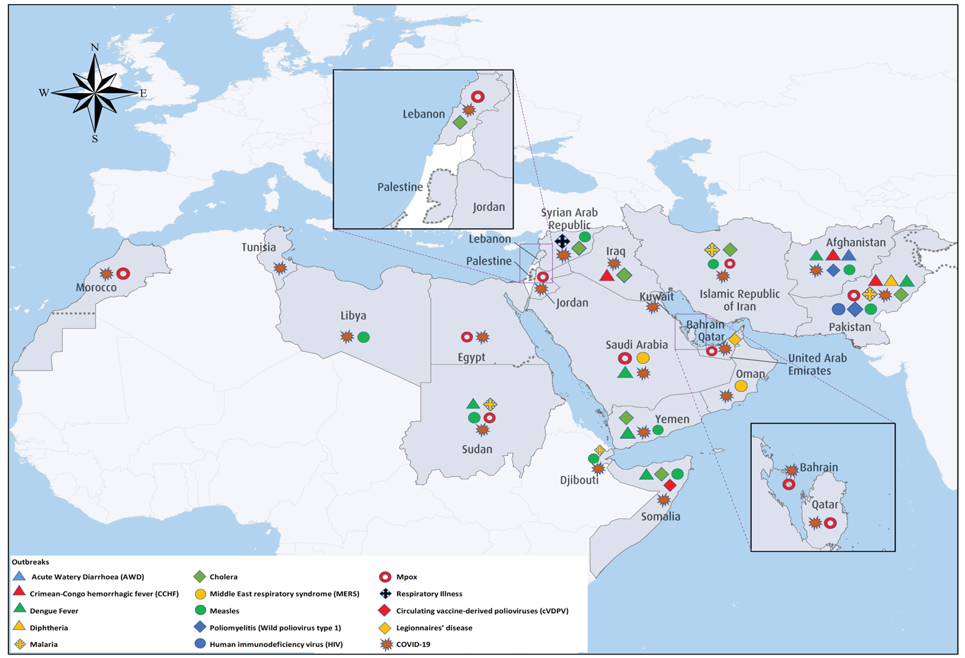 (Click for table) Current outbreaks in the WHO Eastern Mediterranean Region