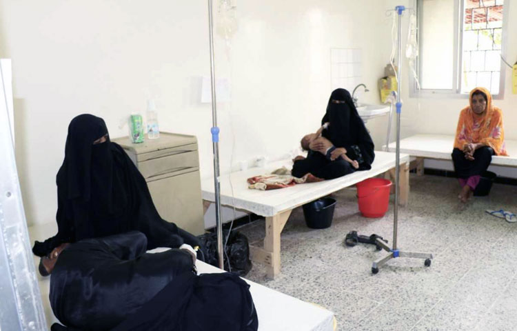 Cholera patients receive treatment in one of diarrhoea treatment centres in Al-Hali district of Al-Hudaydah, where cases, including lab-confirmed cases have recently increased. Most of these patients are deprived of proper sanitation services and unable to buy clean water. To prevent and control cholera, WHO is supporting diarrhoea treatment centres and oral rehydration corners in Al-Hudaydah with medicines, medical supplies and financial incentives for health workers to ensure uninterrupted health services for patients with cholera/ acute watery diarrhoea.