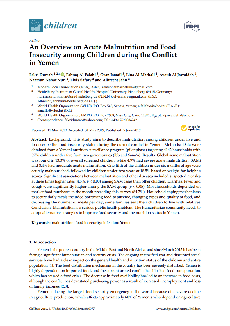 An overview on acute malnutrition and food insecurity among children during the conflict in Yemen