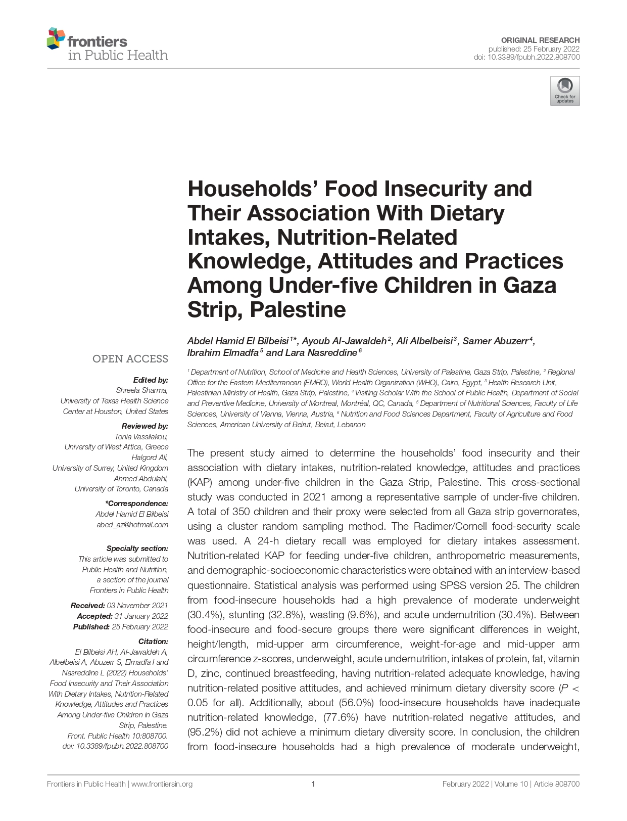 Analysis of the nutritional status in the Palestinian territory: a review study