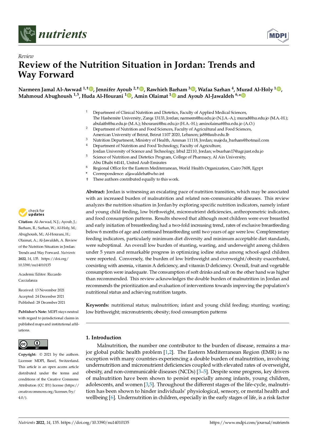 Review of the nutrition situation in Jordan: Trends and way forward