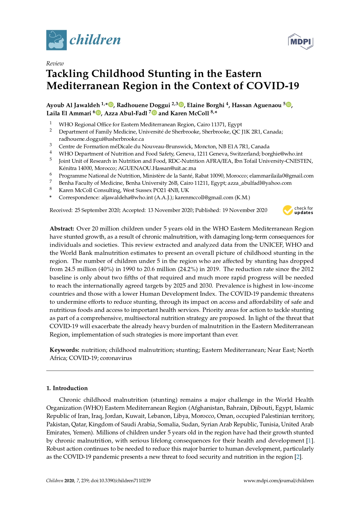 Tackling childhood stunting in the Eastern Mediterranean Region in the context of COVID-19