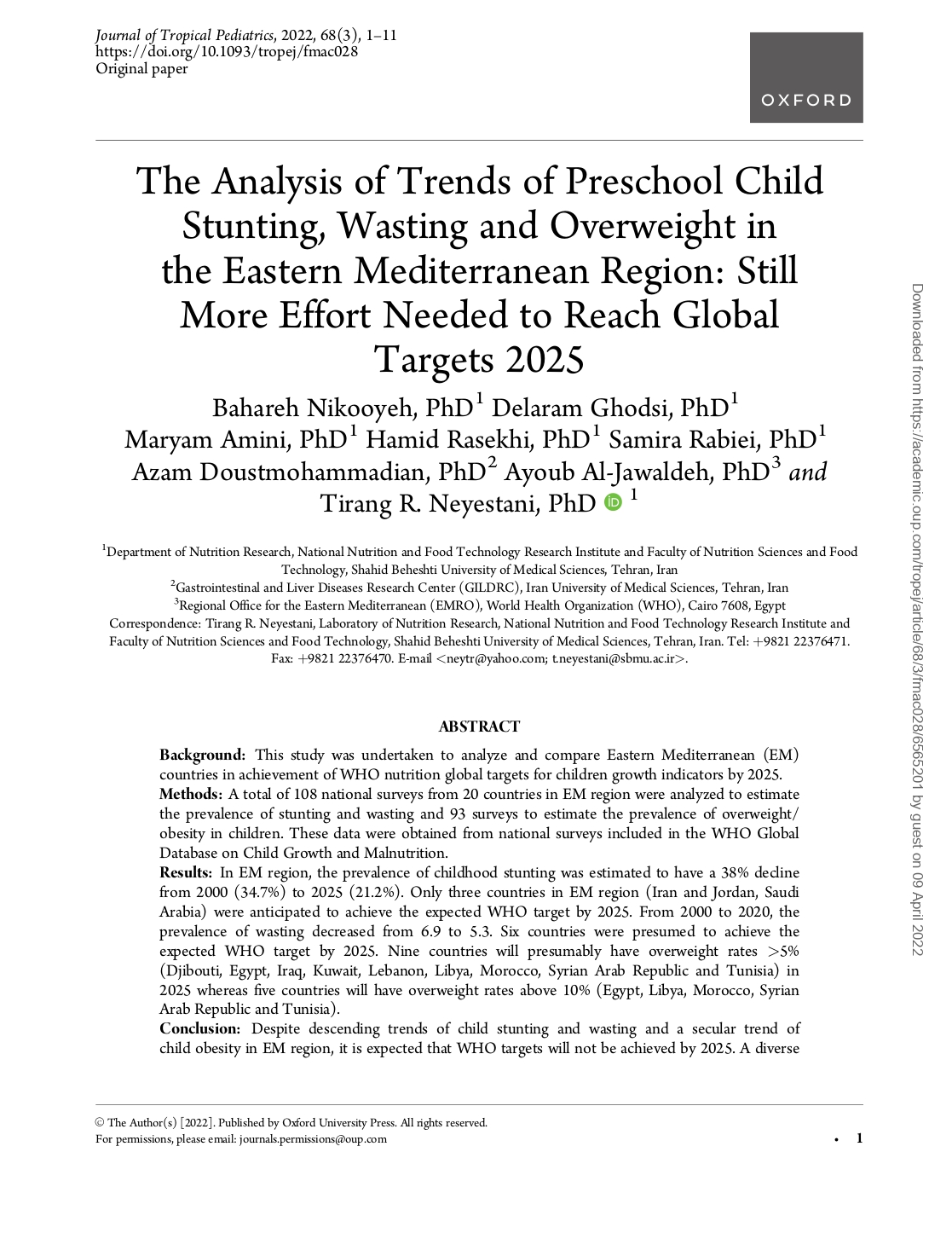 The analysis of trends of preschool child stunting, wasting and overweight in the Eastern Mediterranean Region: still more effort needed to reach global targets 2025